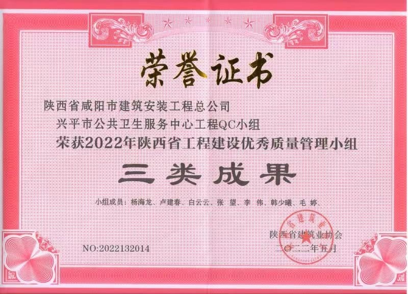 上一篇:2024年度咸陽(yáng)市建設(shè)工程“秦陽(yáng)杯”榮譽(yù)證書